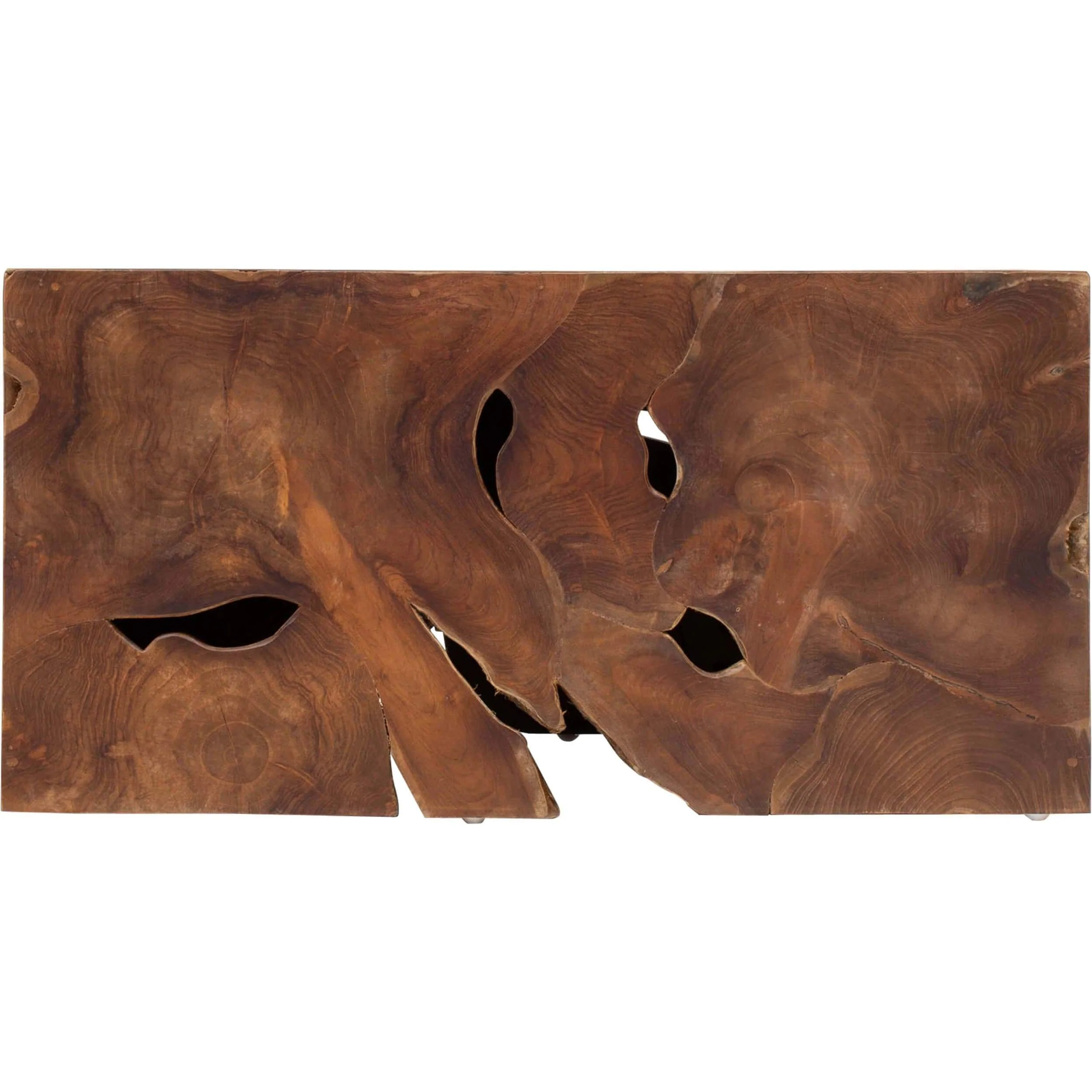 Contemporary style is yours when you add the Teak Block Coffee Table to your living room. Crafted solid teak, this table is as much a conversation piece as it is a functional furnishing for your home. Modern art inspiration is apparent through the unique details of the wood, making this coffee table a bold addition to your design theme.